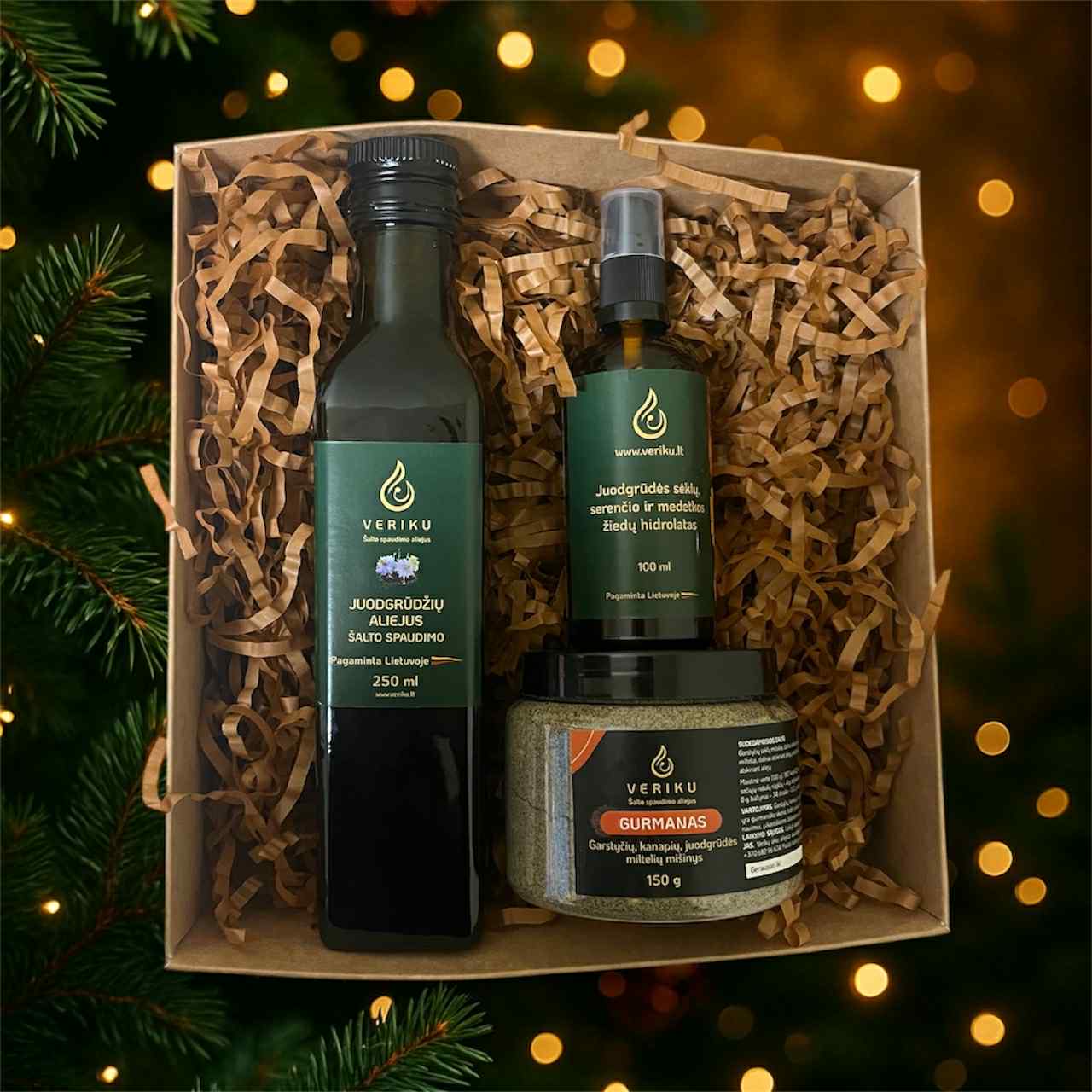 • 250 ml šalto spaudimo, nefiltruoto ir nerafinuoto juodgrūdės aliejaus
